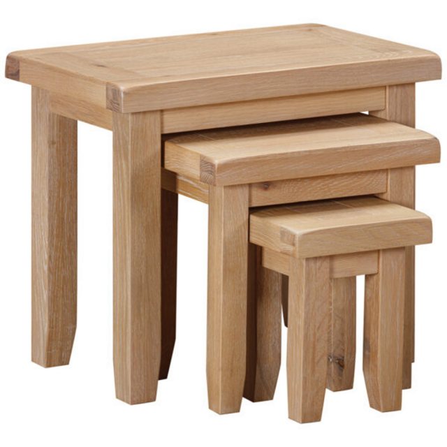 Nest of Tables are a great versatile addition to your living room. Three tables make up this modern nest; they stack neatly together, can be divided up and moved around your living area as needed, and can be neatly tucked away again when you’re done.