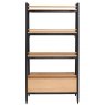 This Shelving Unit from the Ercol Furniture Monza collection has great presence in any room. The black painted framework combined with the light oak shelves and low storage drawer with herringbone design look simply stunning. It's very useful as well with the extra space it offers for both storage and display. It looks fabulous whether loaded with books, CDs, vinyls, speakers or just family pictures.