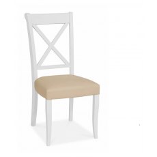 Bentley Designs Hampstead Two Tone Cross Back Chairs, crisp fresh Ivory painted finish with Ivory bonded leather seat pads.