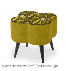 Our super cute Daisy footstool collection is inspired by the forms and shapes used by Orla in her iconic patterns. Available in 2 sizes, the petal shaped design has piped borders and an oversized centre button, perched on tapered legs they are a perfect accent piece to make you smile. Designed to be grouped together in different sizes, colours and pattern to make a statement.